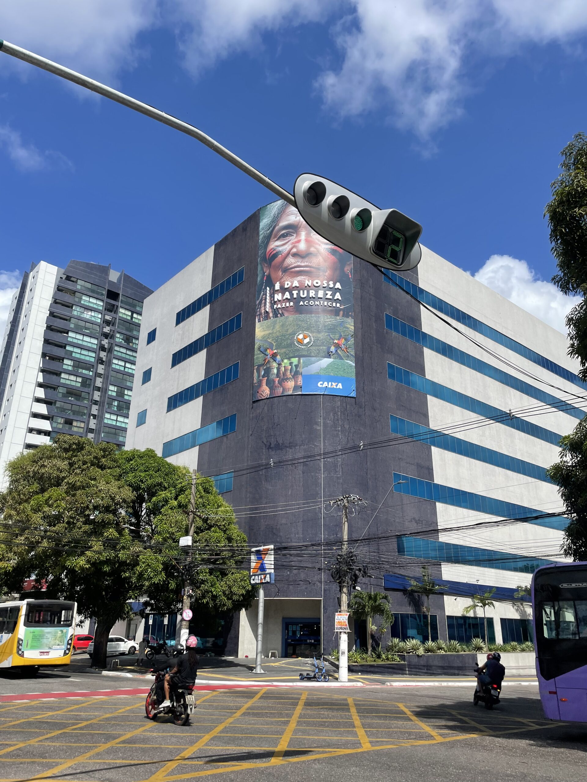 Ainsi, Belém s’est parée d’affiches, de peintures et d’expositions mettant en exergue les peuples autochtones et leurs savoirs ancestraux. Dans cette atmosphère générale, face au déplacement de la communauté internationale venue partager ses expériences et trouver des solutions communes face aux effets des changements climatiques, une peinture m’a particulièrement marquée : « Le futur est ancestral ».