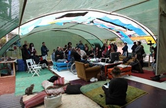 A Casablanca, l’artiste Mohamed Fariji a créé « La Serre », un dispositif agile qui s’est notamment déployé de Casablanca à Chicago en passant par Birmingham. Elle s’installe dans les quartiers périphériques des villes(2). Des artistes proposent alors des activités aux enfants qui « autorisent » les mères à rejoindre l’espace. Elles peuvent elles-aussi participer. Les hommes se mobilisent notamment quand ils sont invités à choisir un objet qui fait sens pour eux pour rejoindre la collection du « Musée Citoyen ». Il est nomade, installé sous la serre. Une communauté se renforce autour d’enjeux mémoriels et créatifs (Pailler, 2018).