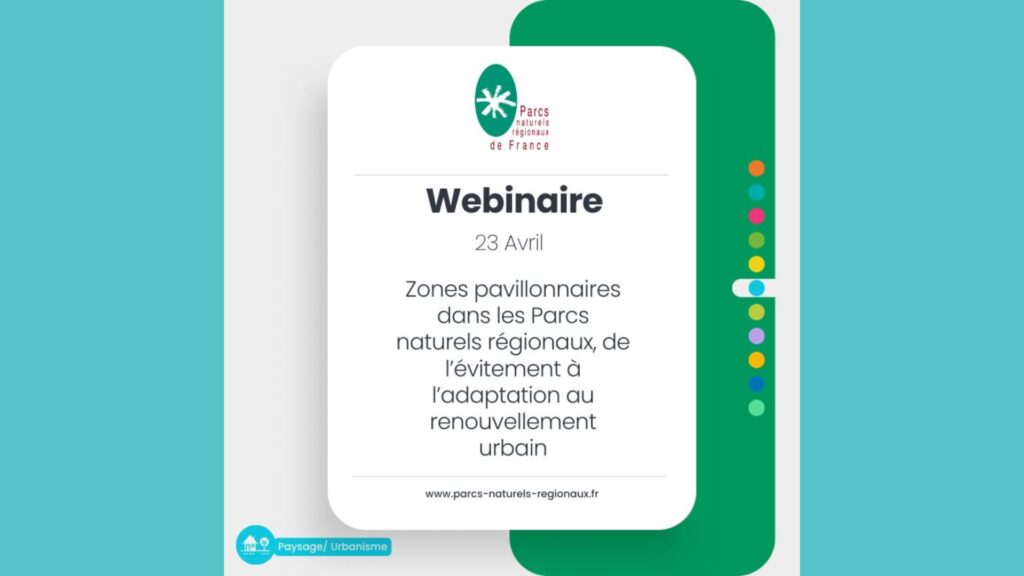 Ce webinaire, organisé par la Fédération des Parcs naturels régionaux de France est programmé le 23 avril de 14h à 16h, est consacré au traitement des zones pavillonnaires dans les Parcs naturels régionaux restituera les résultats d’une enquête portant sur les différentes manières d’aborder ces espaces.