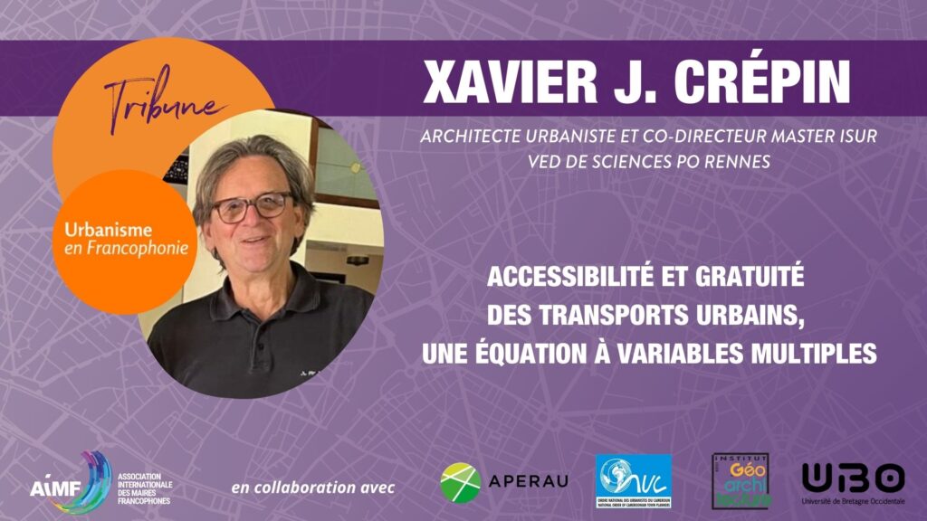 Dans cette tribune « Urbanisme en Francophonie », l’Architecte Urbaniste et Co-Directeur Master ISUR VED de Sciences Po Rennes Xavier J. Crepin nous incite à réfléchir sur la question de la gratuité des transports urbains, déjà expérimentée dans plusieurs villes de France. Que cette gratuité soit motivée à des fins de revitalisation économique des centres urbains ou par des impératifs écologiques et de santé publique, cette dernière fait souvent l’objet d’une instrumentalisation politique variant d’une ville à l’autre. Comment financer la gratuité des transports collectifs pour tous ? Quels en sont les obstacles ? Découvrez son point de vue dans cette tribune.