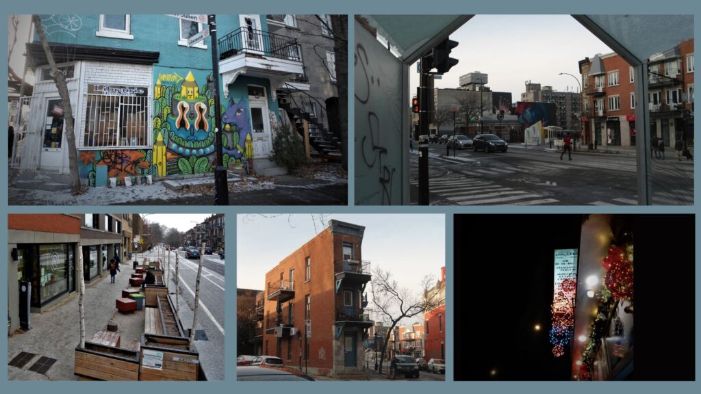 « Composée d’une série de photos prises à Montréal, cette carte postale illustre l’urbanité de la ville québécoise par le prisme de la francophonie : art de rue, bâtiments mixtes, architecture ancienne, mémorial, mobilité, espaces publics, urbanisme d’affichage… ». Alix Valadier-Bouchard, étudiante en deuxième année en Urbanisme à l’Université du Québec à Montréal (UQAM).