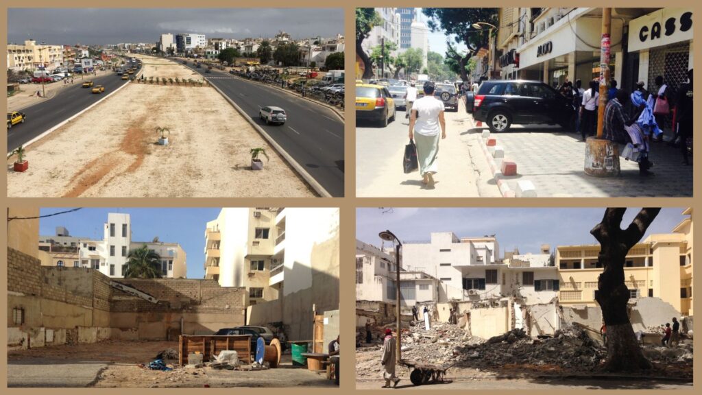 « J’ai un petit faible quand même pour Dakar, avec ce plateau qui tombait en désuétude et qui est reconstruit maintenant et densifié. En termes de patrimoine, ça me hérisse le poil à chaque fois que je vais à Dakar car on a enlevé des vieux bâtiments avec des vieilles tuiles en terre cuite pour mettre des bâtiments en verre ». Jérôme Chenal, architecte-urbaniste suisse et spécialiste des villes africaines