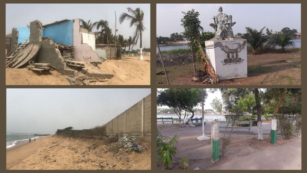 Composée d’une série de photos prises au Togo, cette carte postale de Lucide Safou, étudiant en master d’Urbanisme à l’École Africaine des Métiers de l’Architecture et de l’Urbanisme (EAMAU) de Lomé, pose la problématique de l’avancée de la mer et de ses effets sur les plages, lieux d’échange et de multiculturalisme et plus largement de l’aménagement de l’espace public, lieu idéal pour l’apprentissage et la transmission des valeurs culturelles dans les pays d’Afrique francophone.