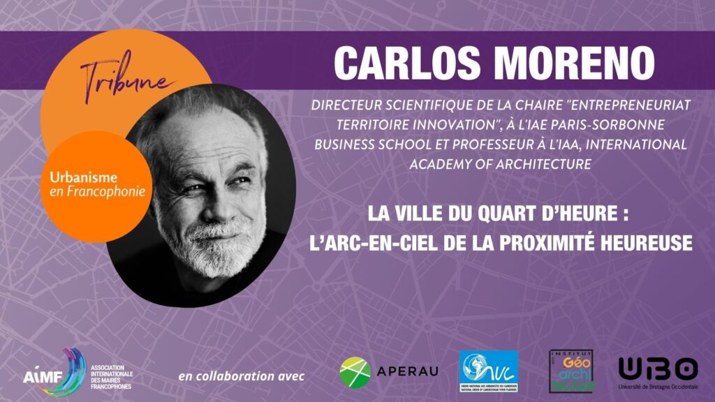 Carlos Moreno (Directeur scientifique de la Chaire »Entrepreneuriat Territoire Innovation », à l’IAE Paris-Sorbonne Business School et Professeur à l’IAA, International Academy of Architecture) nous explique que : « Le concept de la « ville du quart d’heure » est né d’un travail de recherche cherchant à comprendre le rapport entre le temps et la vie urbaine et territoriale, à travers la convergence de trois courants : le chrono-urbanisme, rapport du temps par rapport à la vie dans la ville, la chronotopie, la manière d’utiliser un lieu de manière polyvalente en fonction du moment et la topophilie, le récit autour du lieu dans lequel on vit ».